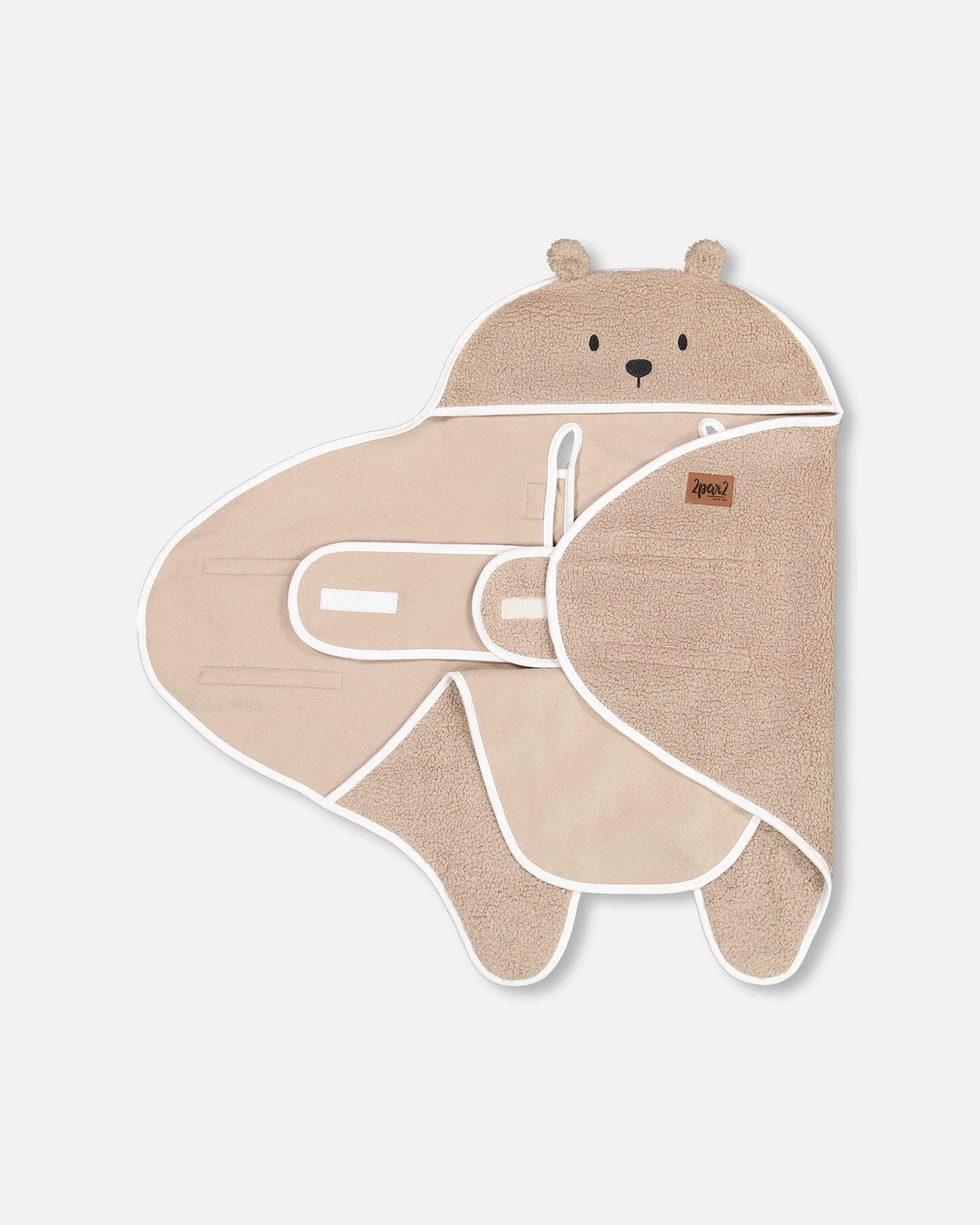 In a wrap silhouette with animal ears, our Baby Cocoon Blanket Brown Teddy Bear is a playful way to warm up on a chilly day. It features an animal face, contrasting trim and a small logo patch.