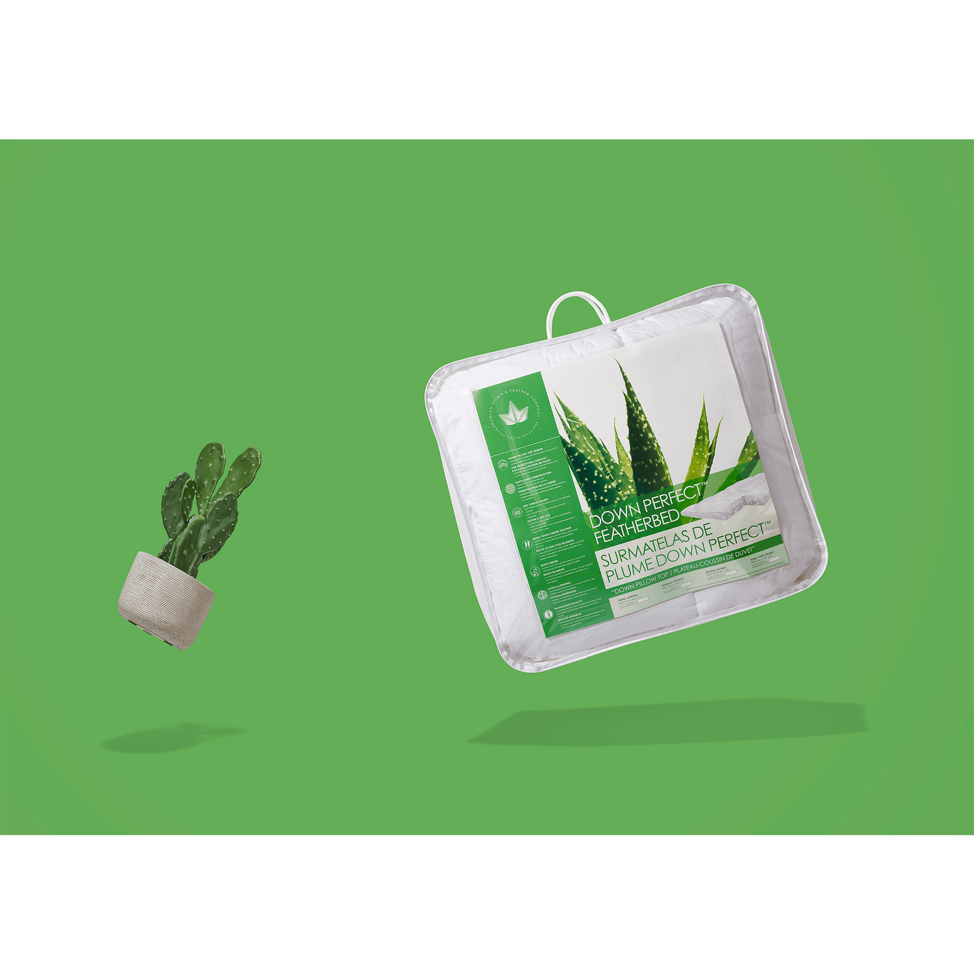 Is your mattress too soft? Are you looking for additional firmness and support? If so, this mattress topper is for you :) This feather bed has 2 layers. The bottom layer, which makes up the bulk of the product, is filled with goose feather, which provides great, resilient support. The top layer is filled with 550 loft down, which adds a soft buffer against the feather. Down Perfect™ products combine the firmness of feather with the softness of down for the best of both worlds! The outer shell is crisp 255 thread count cotton, and features corner elastics for affixing to the mattress.