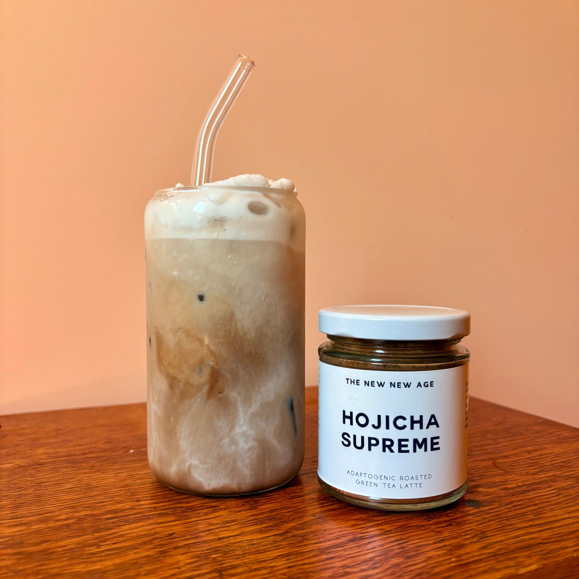 Experience grounded calm and focused energy with Hojicha Supreme, a rich, adaptogenic roasted green tea latte blend crafted to support your daily rituals. Centered around organic Japanese Hojicha—a soothing, low-caffeine green tea roasted to perfection—this creamy, nourishing latte powder is infused with a potent blend of adaptogens and functional mushrooms to elevate both body and mind.