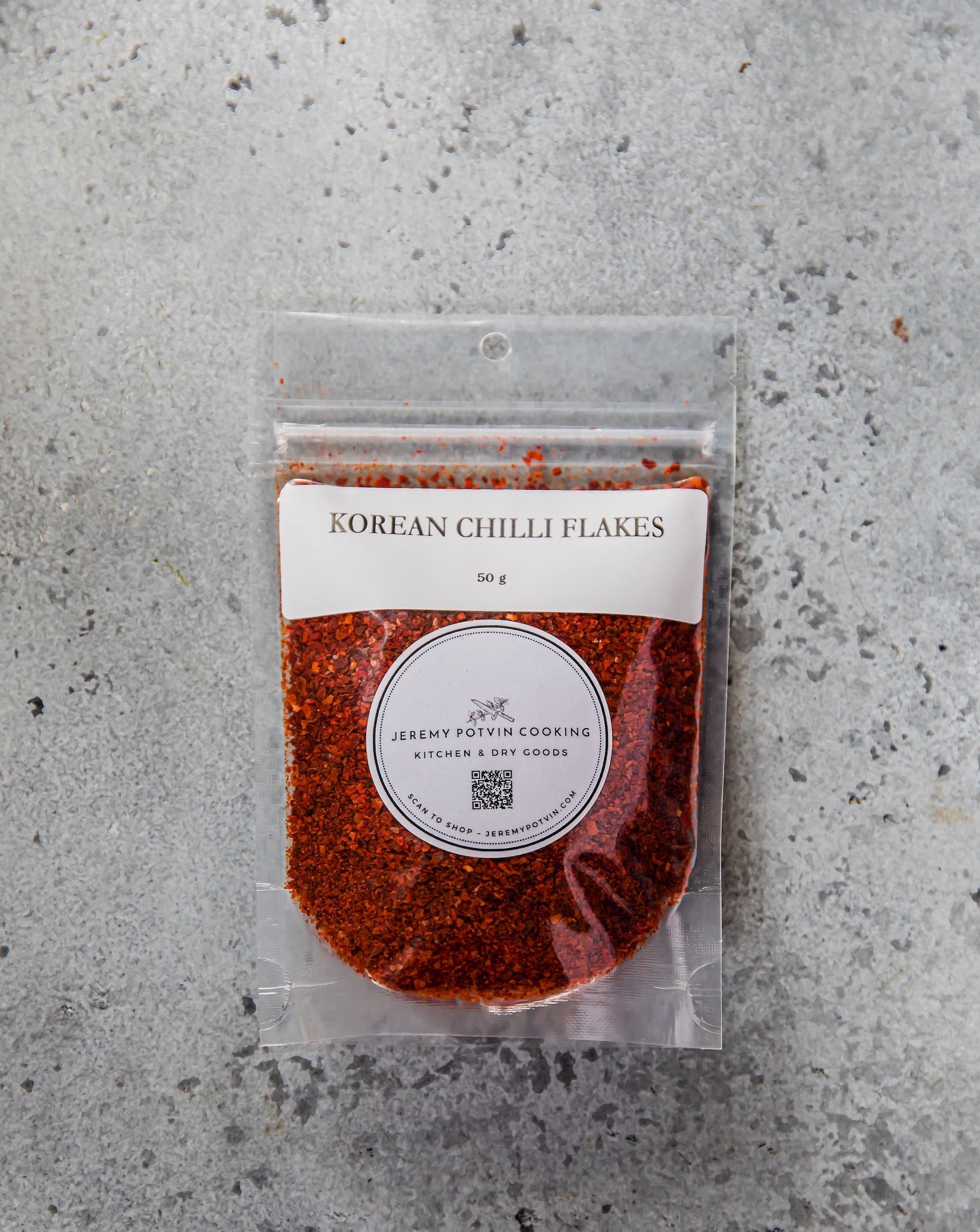 Korean Chili Flakes are (obviously) commonly used in Korean dishes such as kimchi jigae or soondubu, however they can also be used in BBQ rubs or in a fried chicken flour dredge. These coarse and crispy flakes are incredibly versatile since they balance a spicy, yet mildly sweet flavour to any dish.