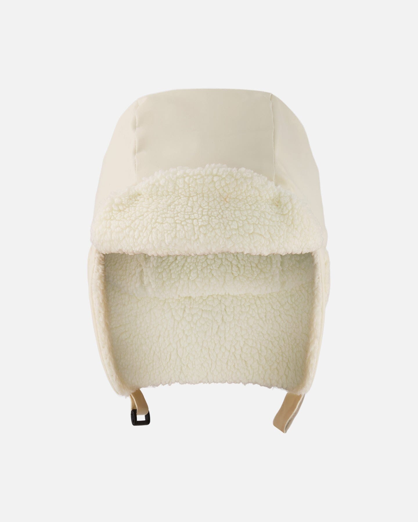 Made for the coldest days of the year, this winter hat for babies fully protects little heads, ears, and cheeks. Lined with sherpa fabric that makes it ultra-warm, this chapka features ear flaps that cover the cheeks, a strap that attaches under the chin, and a small logo patch in back.