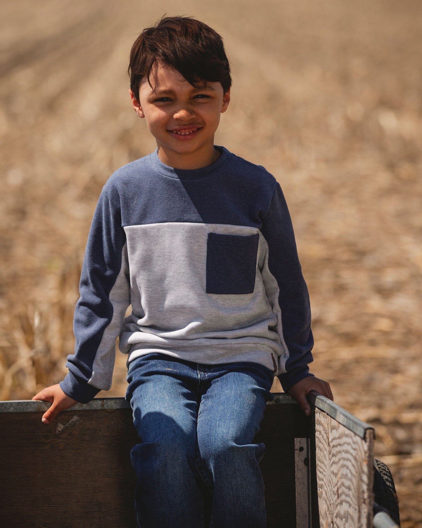 Heavier than a tee but lighter than a sweatshirt, this color block shirt is perfect for wearing on a chilly day. In brushed flat back rib, this top features a relaxed fit with long sleeves, a crew neckline, and a two-tone color combo that makes it easy to mix and match with any of his favorite bottoms.