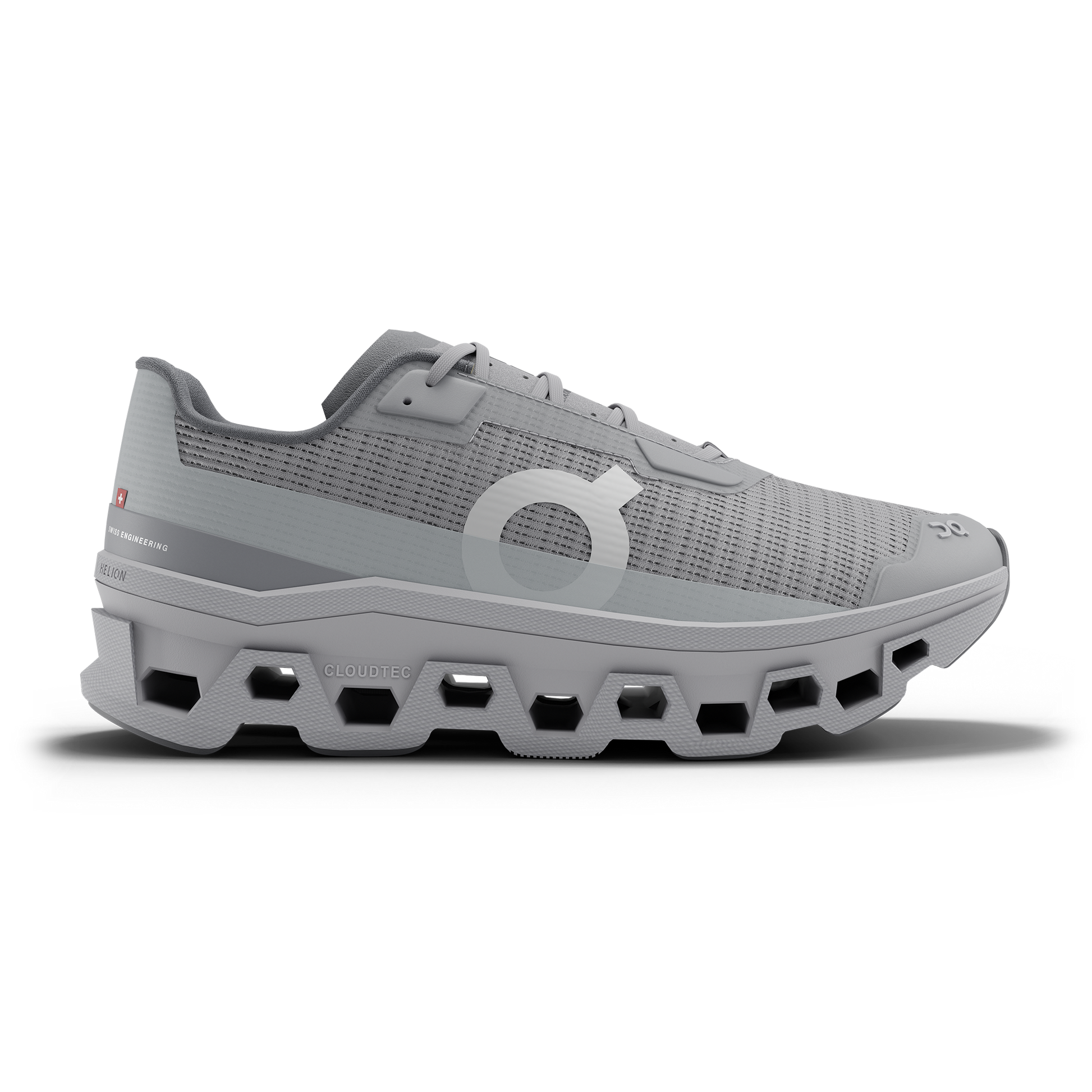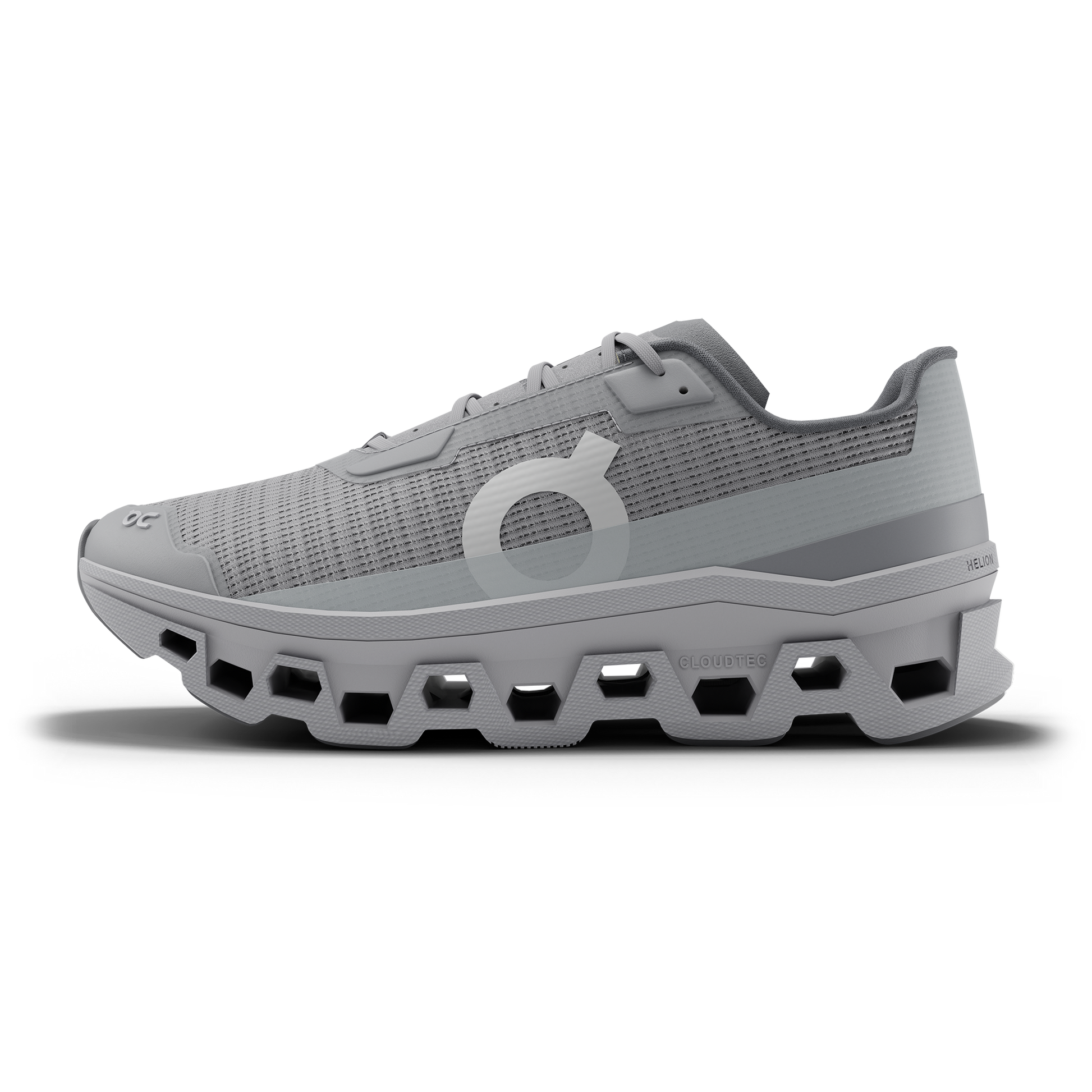 Our distinctive On branding, now with a versatile new look. The Cloudmonster’s unique visual aesthetic, updated with a new haptic upper for wear-with-anything street style.