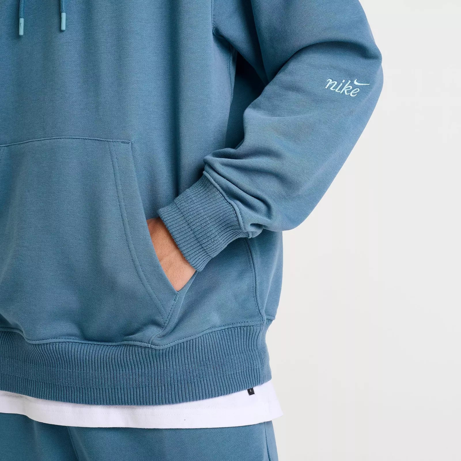 MEN'S PO HOODIE IN FT SURREY FABRIC. THIS PIECE HAS THICK DRAWCORDS, SILLICON DIPPED AND PRINTED DRAWORD TIPS, A JACQUARD HEM AND CUFFS, AND A CHAINSTITCH EMBROIDERED NIKE READ ON THE LEFT SIZE OF THE WEARER'S HOOD.