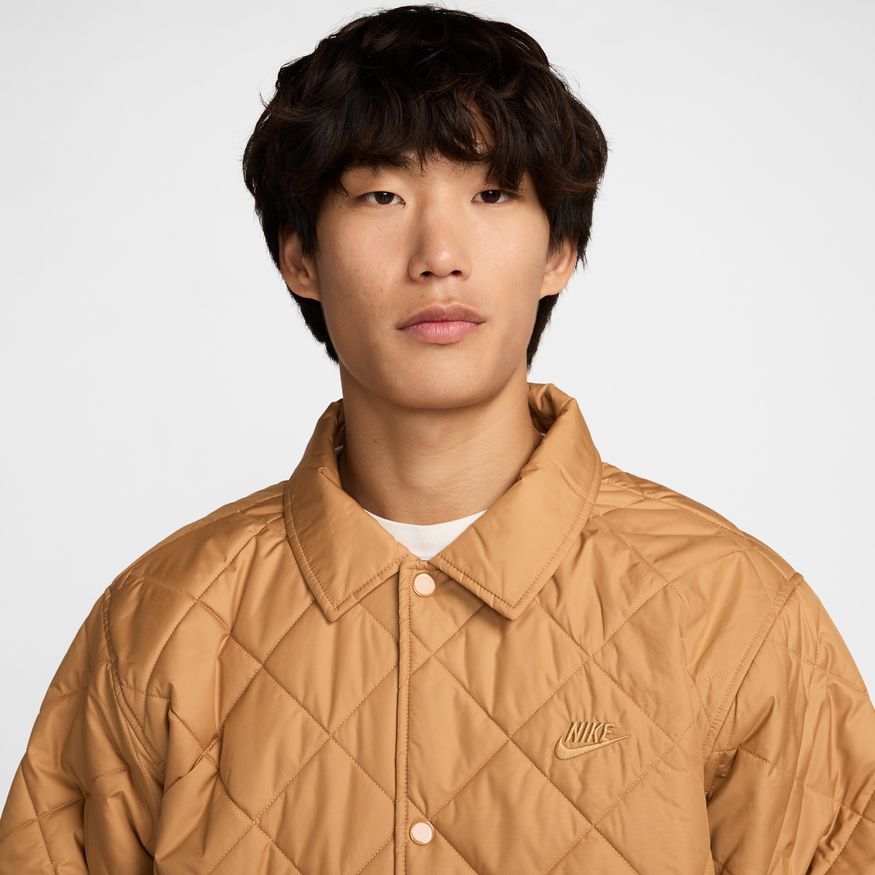 Ready for cold weather, this roomy jacket comes equipped with Nike Therma-FIT and quilted insulation. The water-repellent body fabric helps keep you dry.