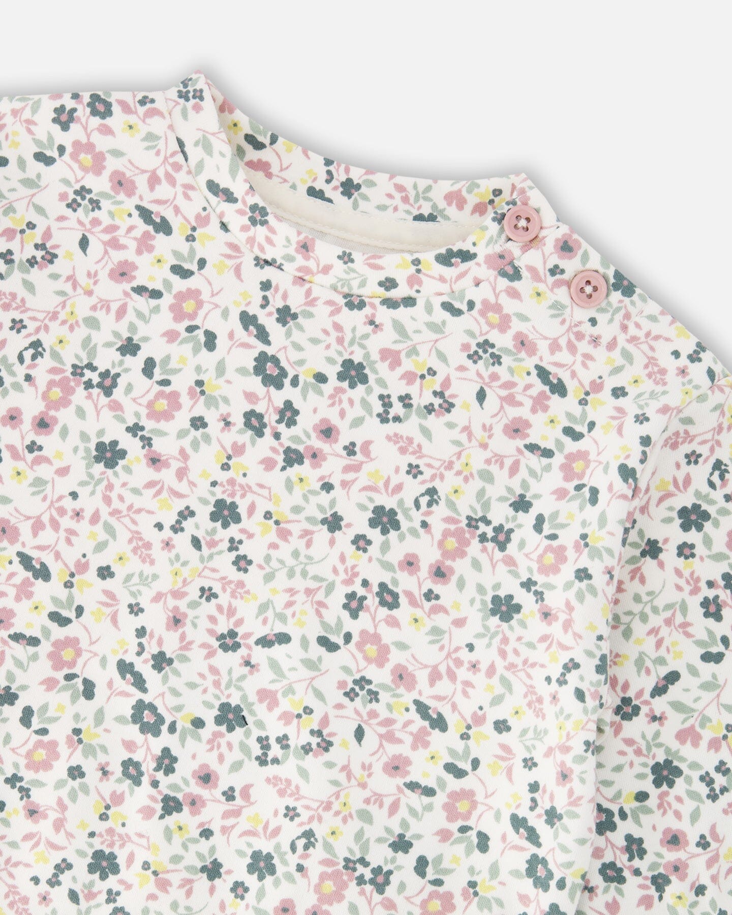 Designed to grow with them, our Organic Cotton Evolutive Pant and Long Sleeve Top Set Jade Green is as practical as it is cozy. The long-sleeve sweater features a relaxed fit with subtle shoulder snaps for easy dressing, while the evolutive pants have an elastic waist, folded cuffs, and delicate floral details on each leg. A must-have set for comfort, movement, and everyday adventures.