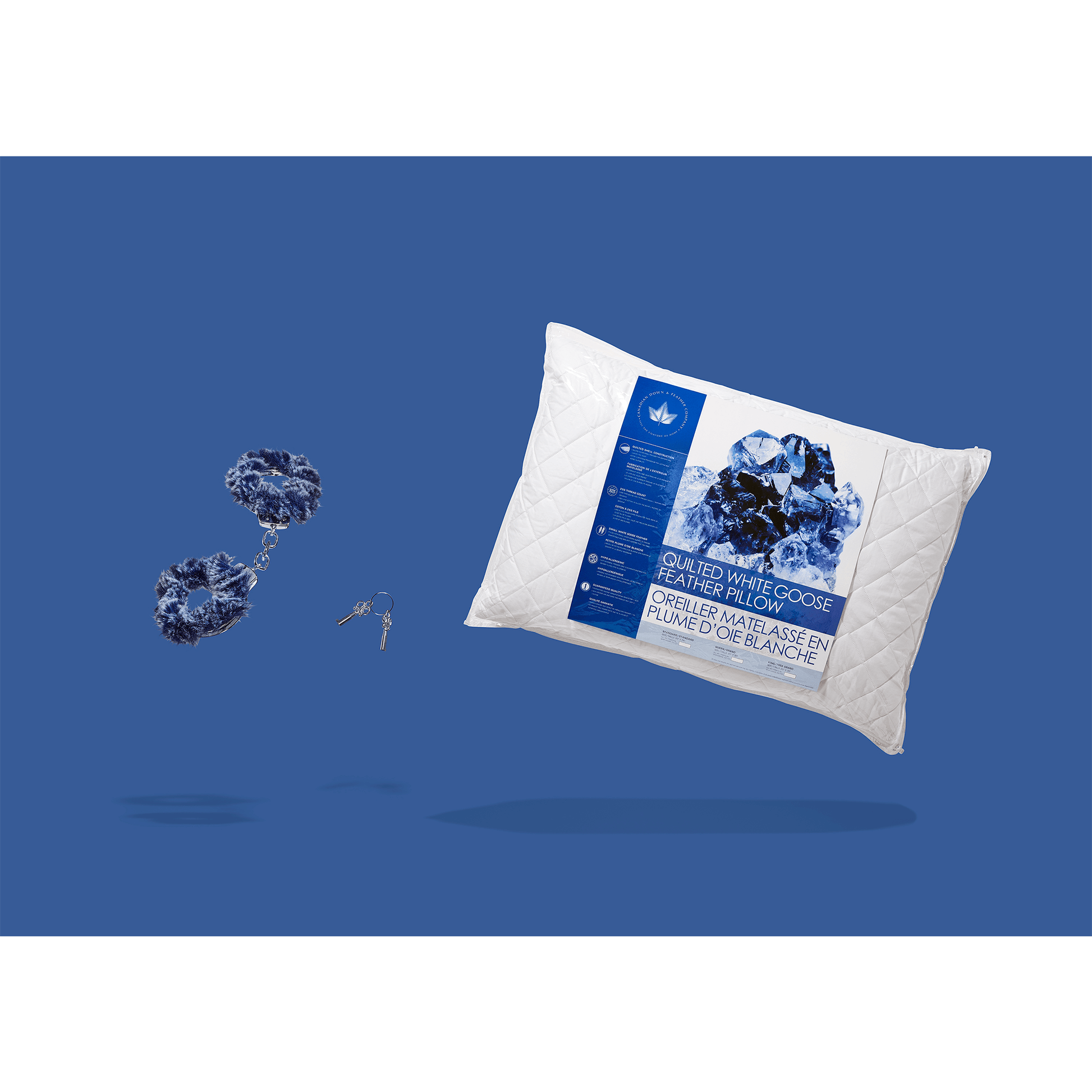 This pillow is filled with care in Canada. The pillow is filled with goose feather. Feathers provide great support in pillows, due to the feather quills. The outer shell is quilted 255 thread count cotton. The quilting results in a thicker, more cushiony shell, which creates a buffer against the feather, making the quills less noticeable than in a traditional feather pillow.