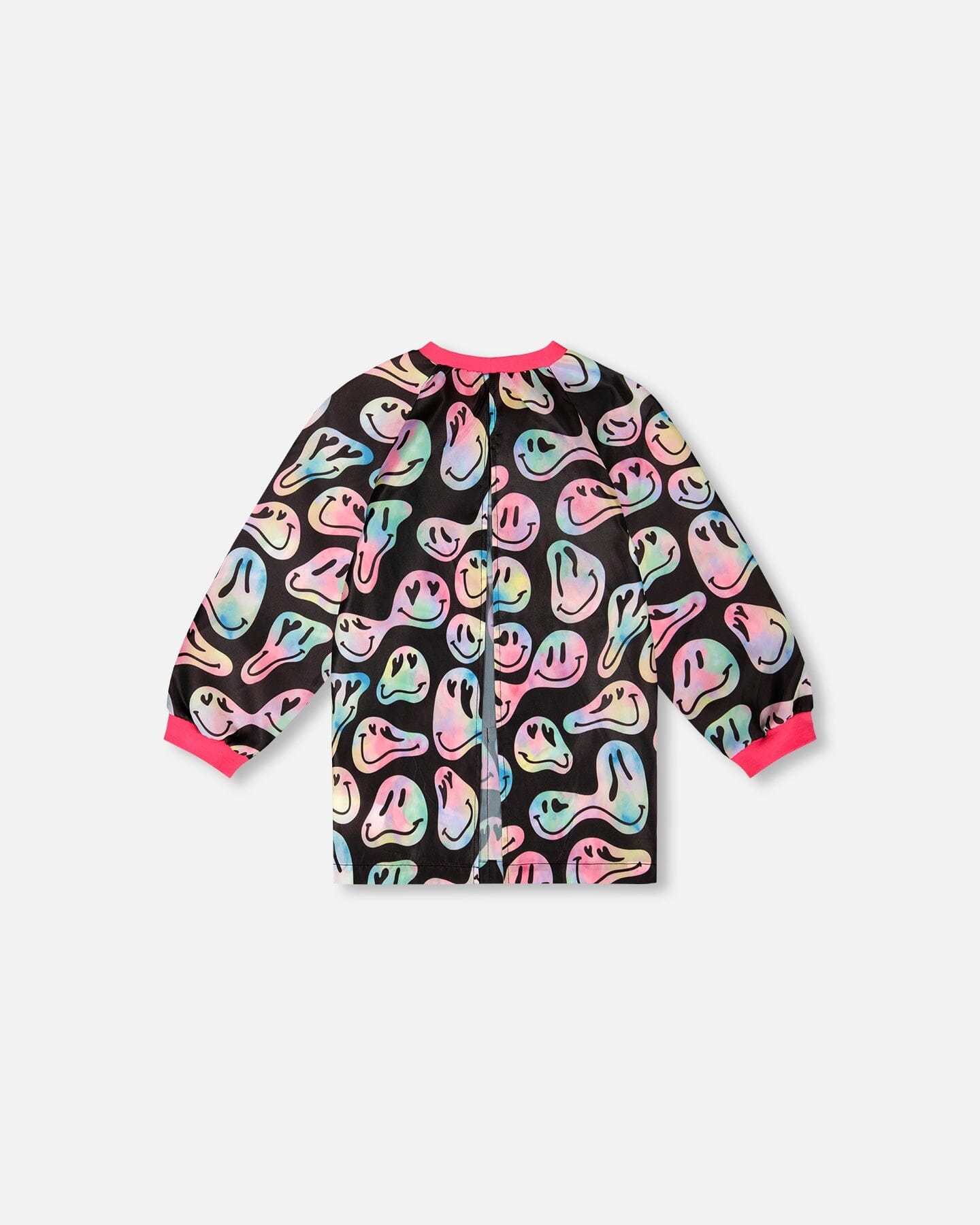 Make art class your most stylish moment of the day with our smiley face print smock. In fabric made from recycled plastic bottles, this eco-friendly school apron features a long raglan sleeve silhouette with double front pockets, a round neckline, elasticated wrists, and a water-resistant finish..