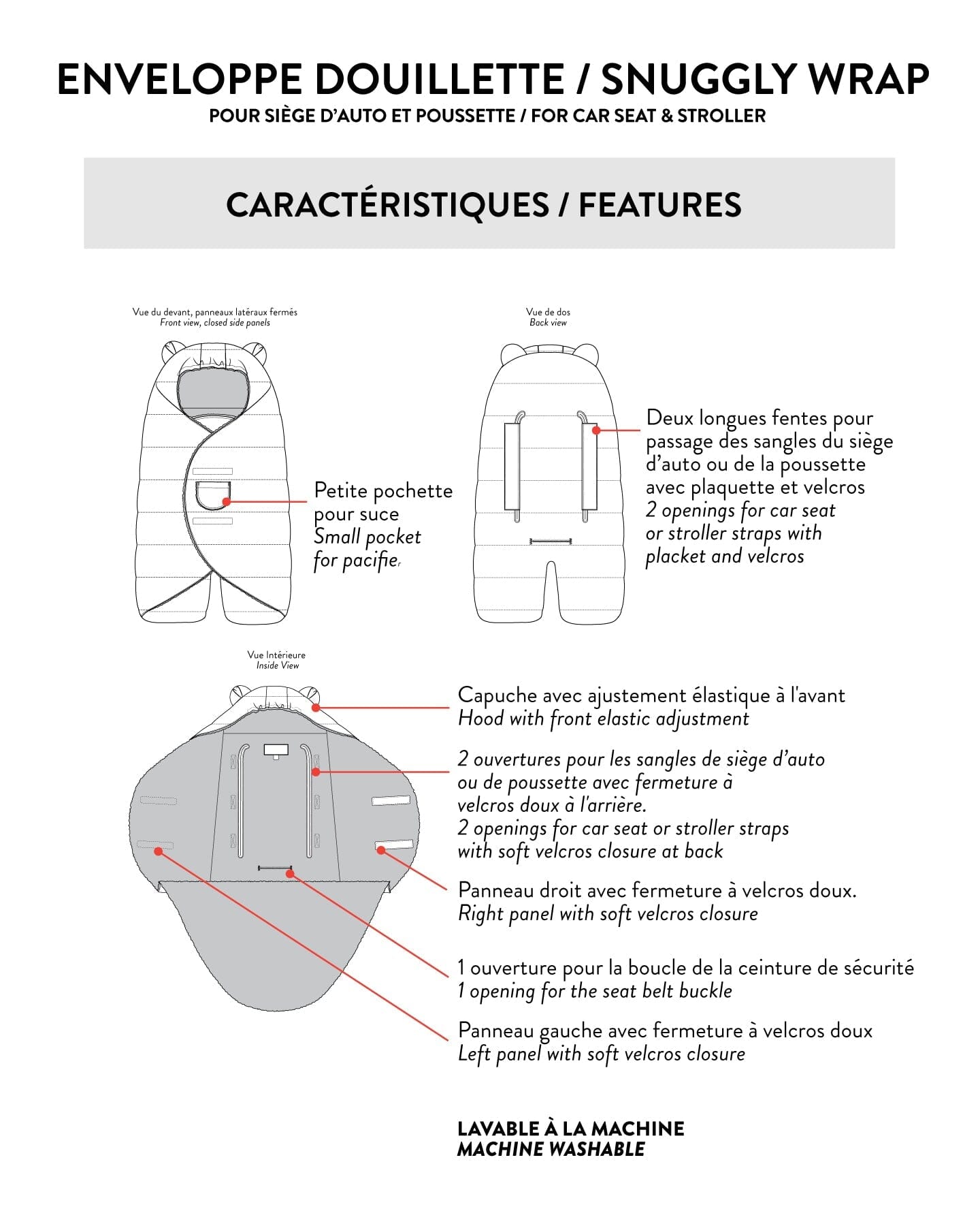 With a waterproof coating and breathable construction, this bunting bag is designed to keep infants safe and warm in the coldest temps. Fully lined with soft plush for all-day comfort, this snuggly wrap is stroller and car seat compatible with a dirt-repellent BIONIC-FINISH® ECO coating, side openings with Velcro straps, and a bottom opening with a zipper to allow the seatbelt buckle to pass through.