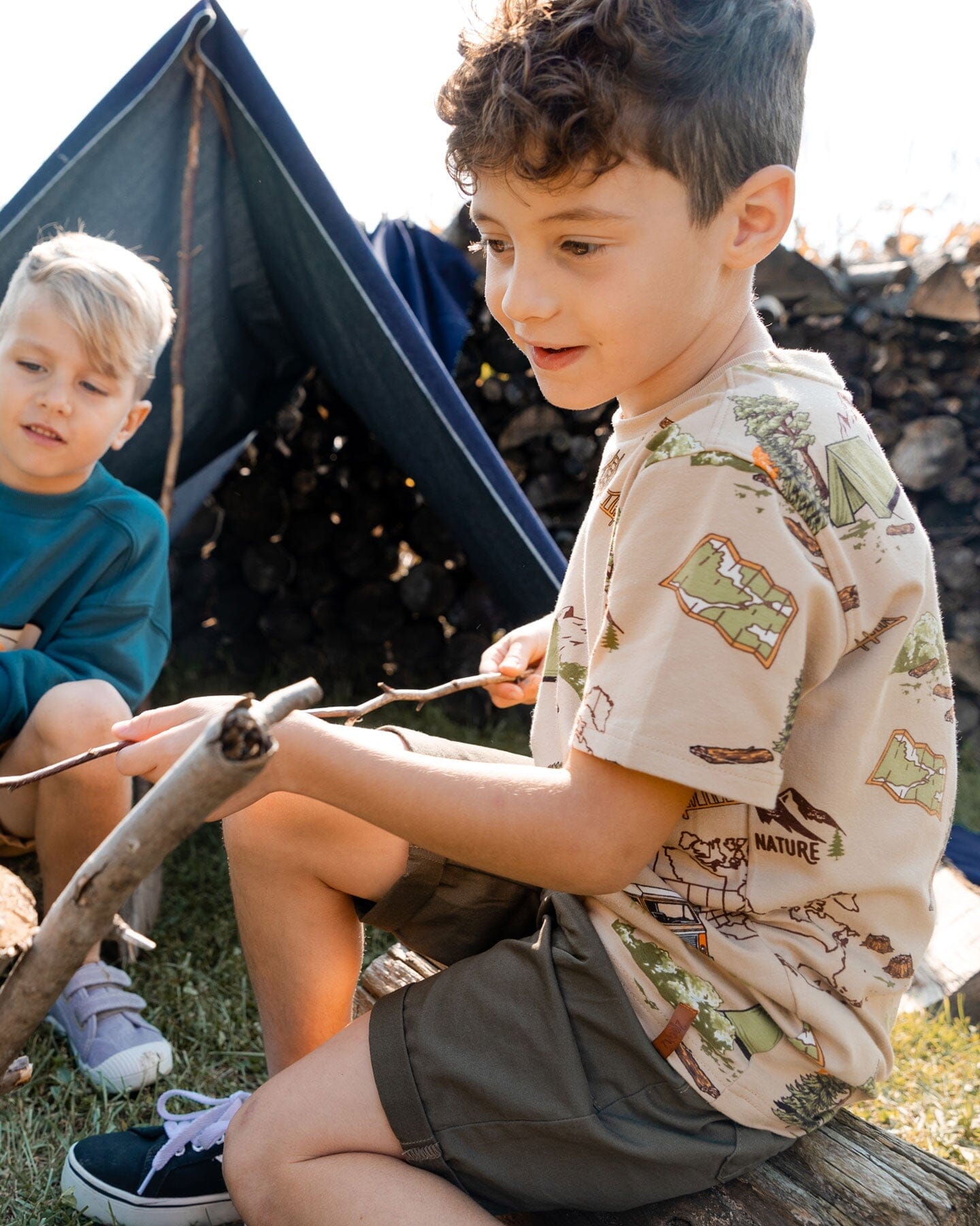 Freshen up his spring and summer wardrobe with our Stretch Twill Short Olive Green. Detailed with rolled cuffs at the hem, these versatile shorts are made from soft stretch cotton and feature a drawstring waistband, front utility pockets, and an easy-to-wear relaxed fit. The neutral color makes them easy to pair with all of his favorite tops and graphic tees!