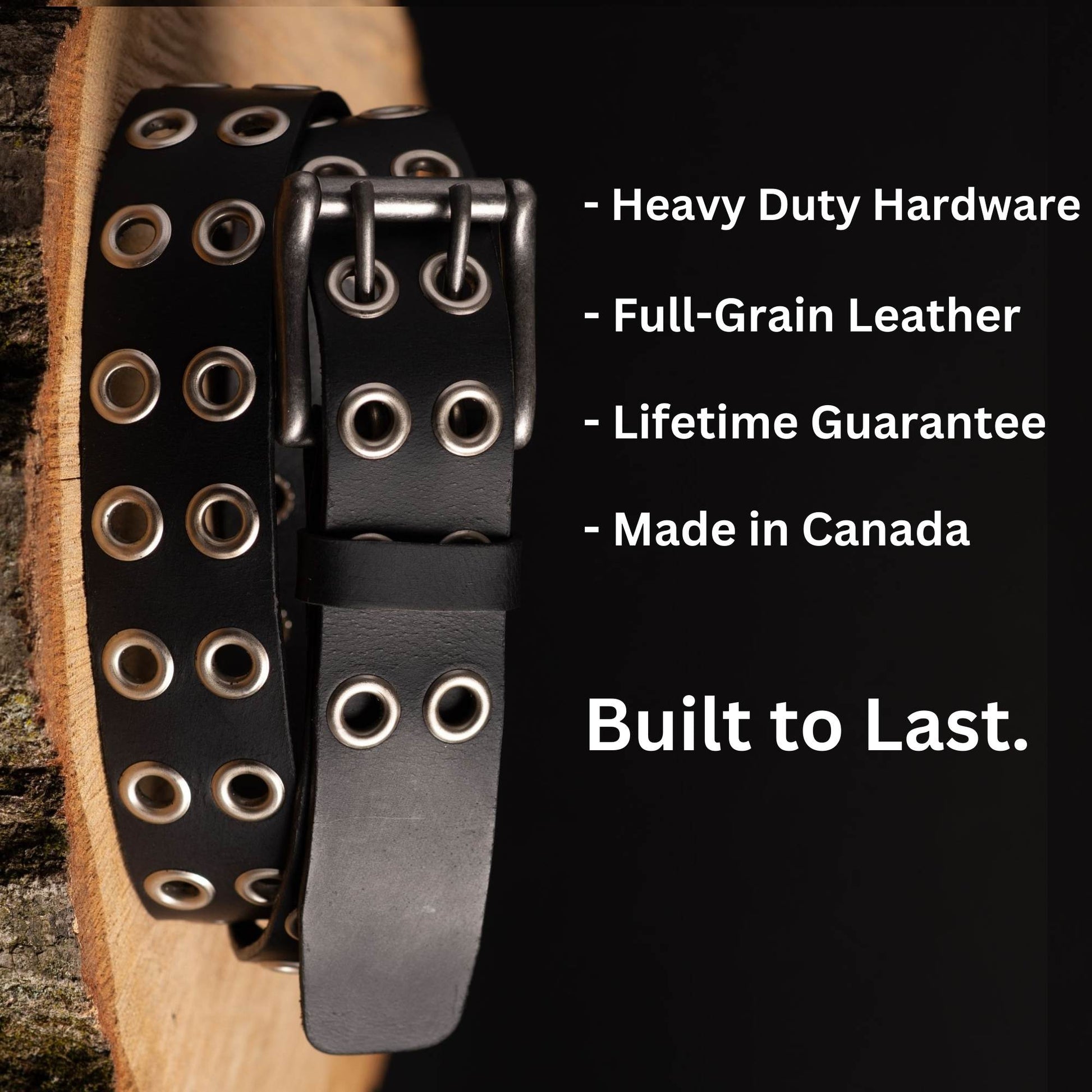 The Brixton Belt - Black Double Grommet 100 % Full Grain Leather Belt
