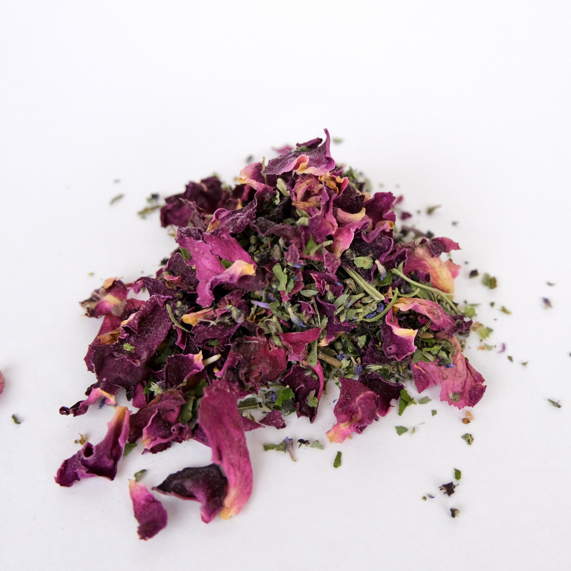 A heart-warming herbal blend of rose petals, rose bee balm, rose petal thyme, holy basil and anise hyssop.