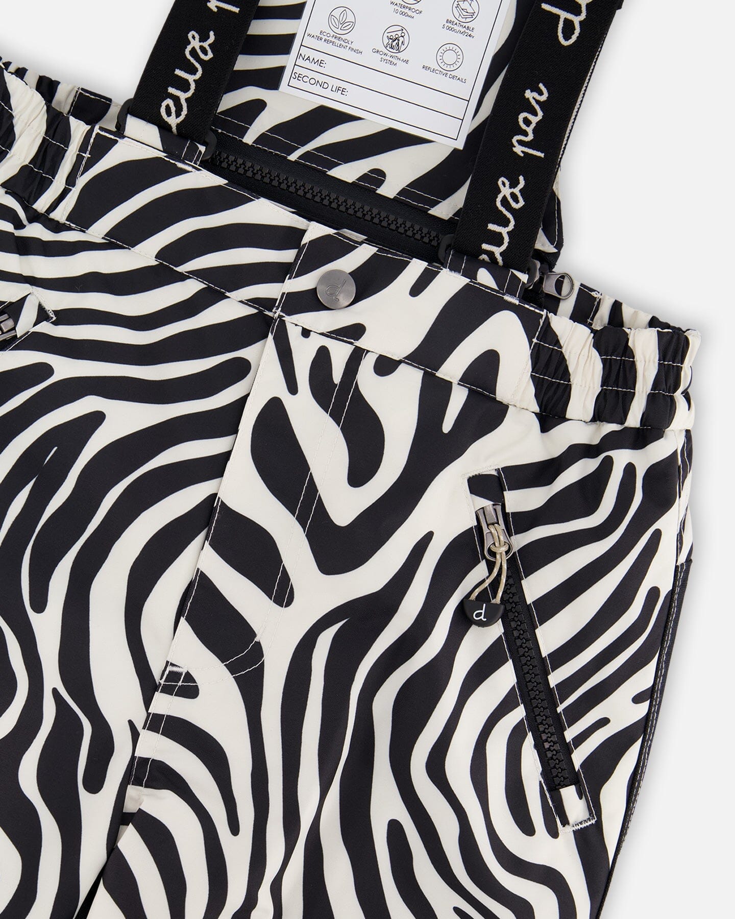 Waterproof, breathable, and insulated for cold protection down to -30°C (-22°F), our two-piece PLAY ski suit in lavender with zebra print pants is designed for maximum comfort, warmth, and performance in the snow. This winter snowsuit features a fleece-lined jacket with a detachable and adjustable hood, articulated sleeves for improved range of motion, elastic cuffs, a snow skirt, expandable sleeves so you can adjust the length as the child grows, and a protective wind flap and chin guard. The pants are constructed with Cordura®-reinforced panels for long-lasting durability, articulated knees, adjustable and removable suspender straps, ankle snow guards, and zippered pockets to hold ski passes and other essentials.