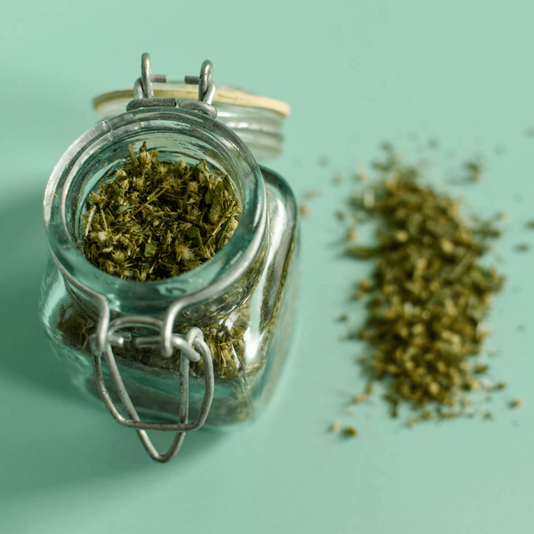 La verge d'or, aussi appelée solidago du Canada, est une plante sauvage qui pousse dans les champs et prairies boréales du Québec. Appréciée pour sa floraison éclatante, cette sommité fleurie est récoltée à la main avec soin dans la région du Lac Saint-Jean. Elle est séchée doucement afin de préserver toute sa richesse aromatique, puis broyée pour en faciliter l'utilisation.