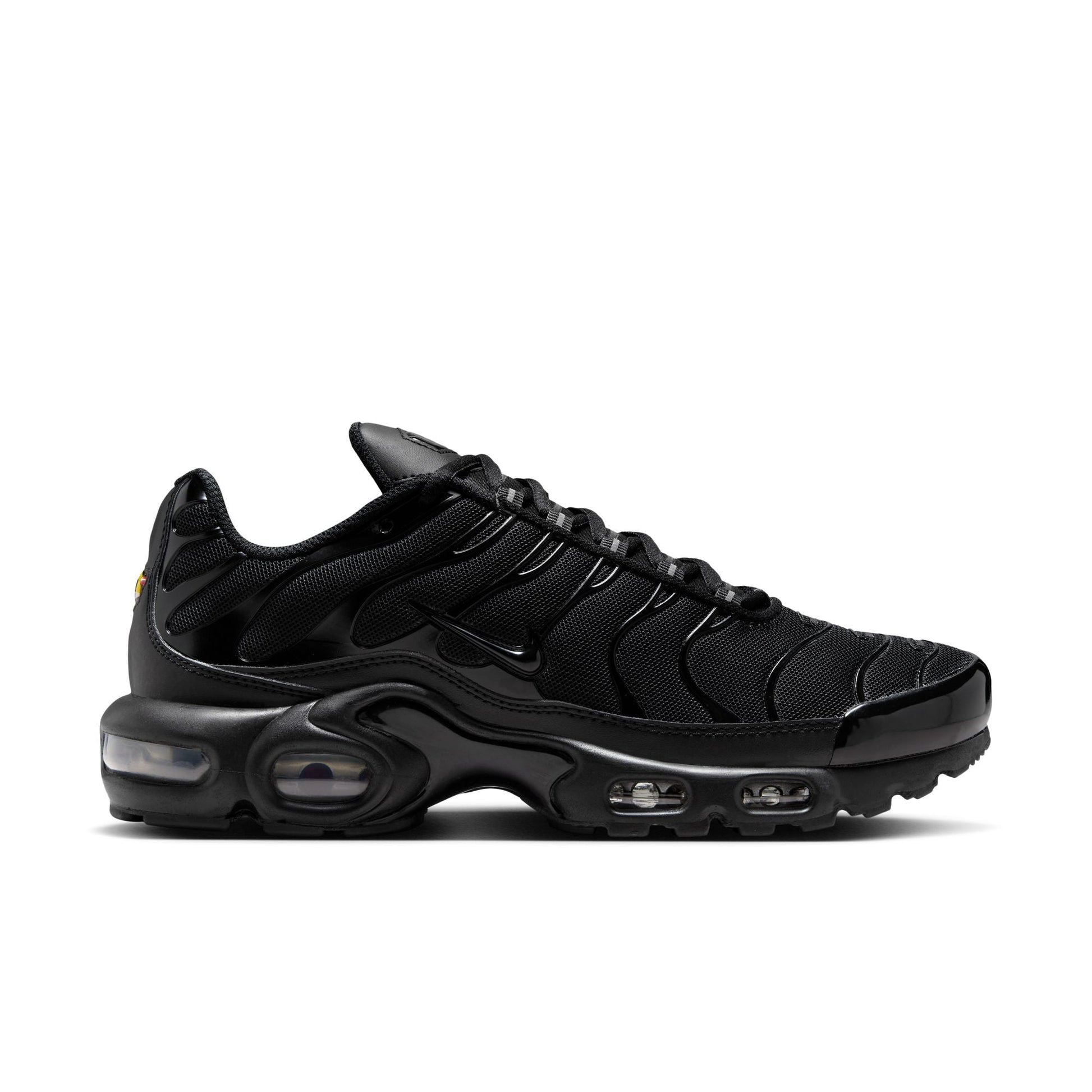 Let your attitude have the edge in the Nike Air Max Plus, a tuned Air experience that offers premium stability and unbelievable cushioning. Featuring airy mesh, the original wavy design lines and polished TPU accents on the toe and sides, it celebrates your defiant style.