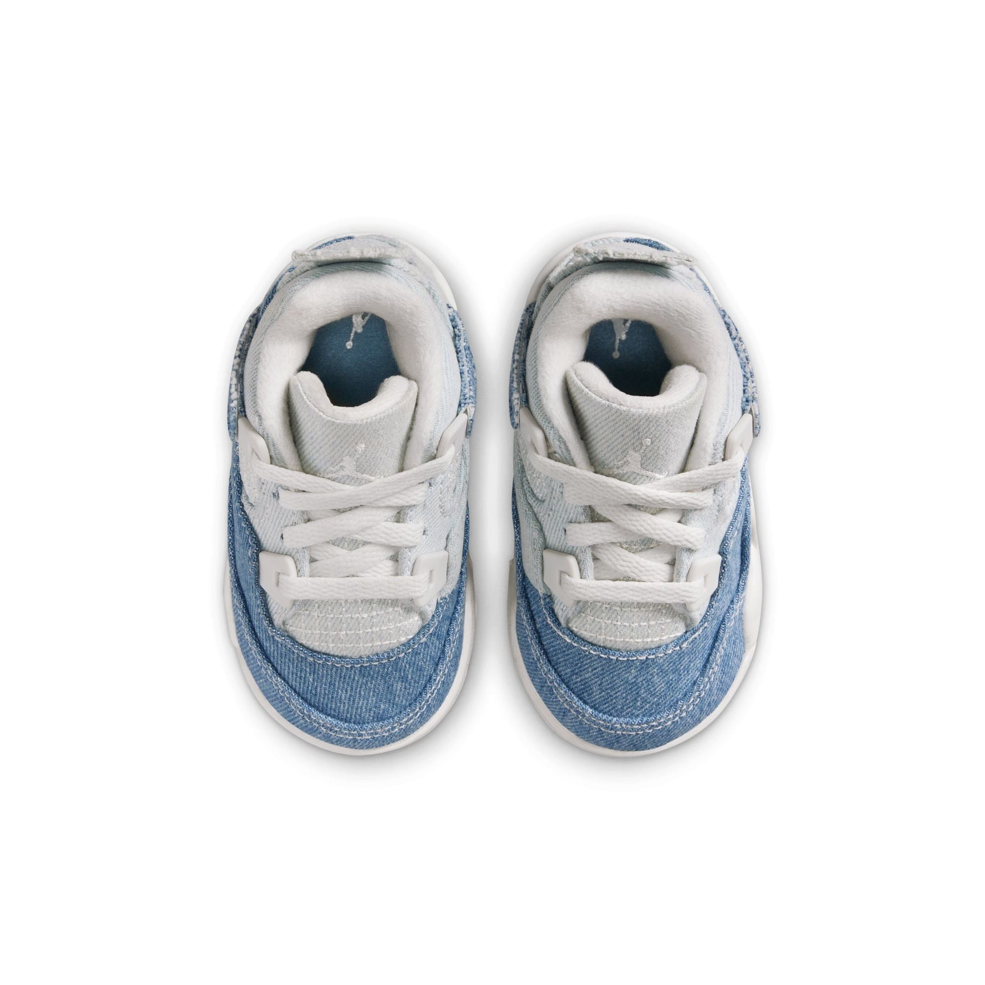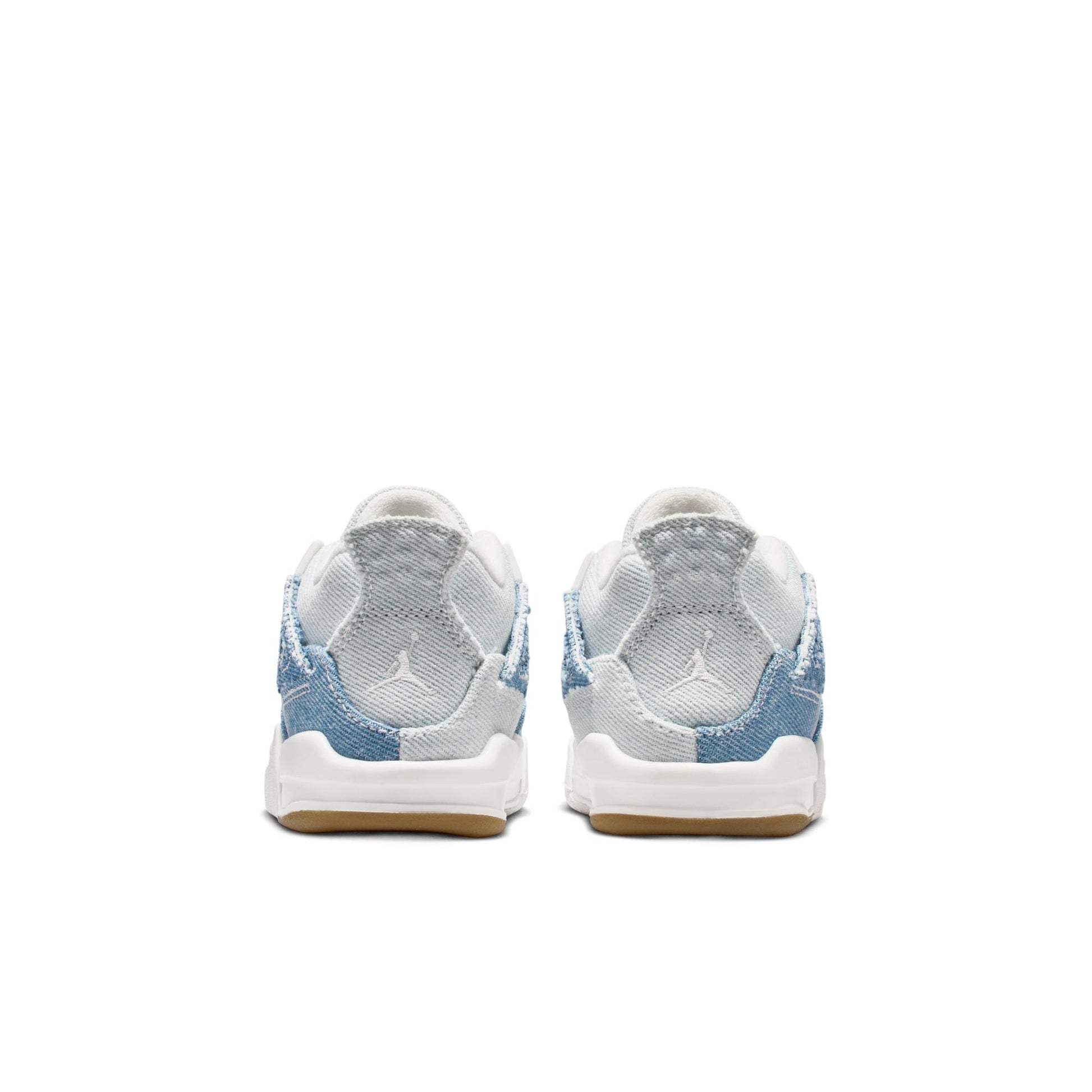 Denim and gold. We're celebrating two iconic wardrobe staples with this special Jordan 4 Retro. This textile takedown puts a fresh spin on a classic, giving your kiddo the perfect kicks to finish any 'fit.