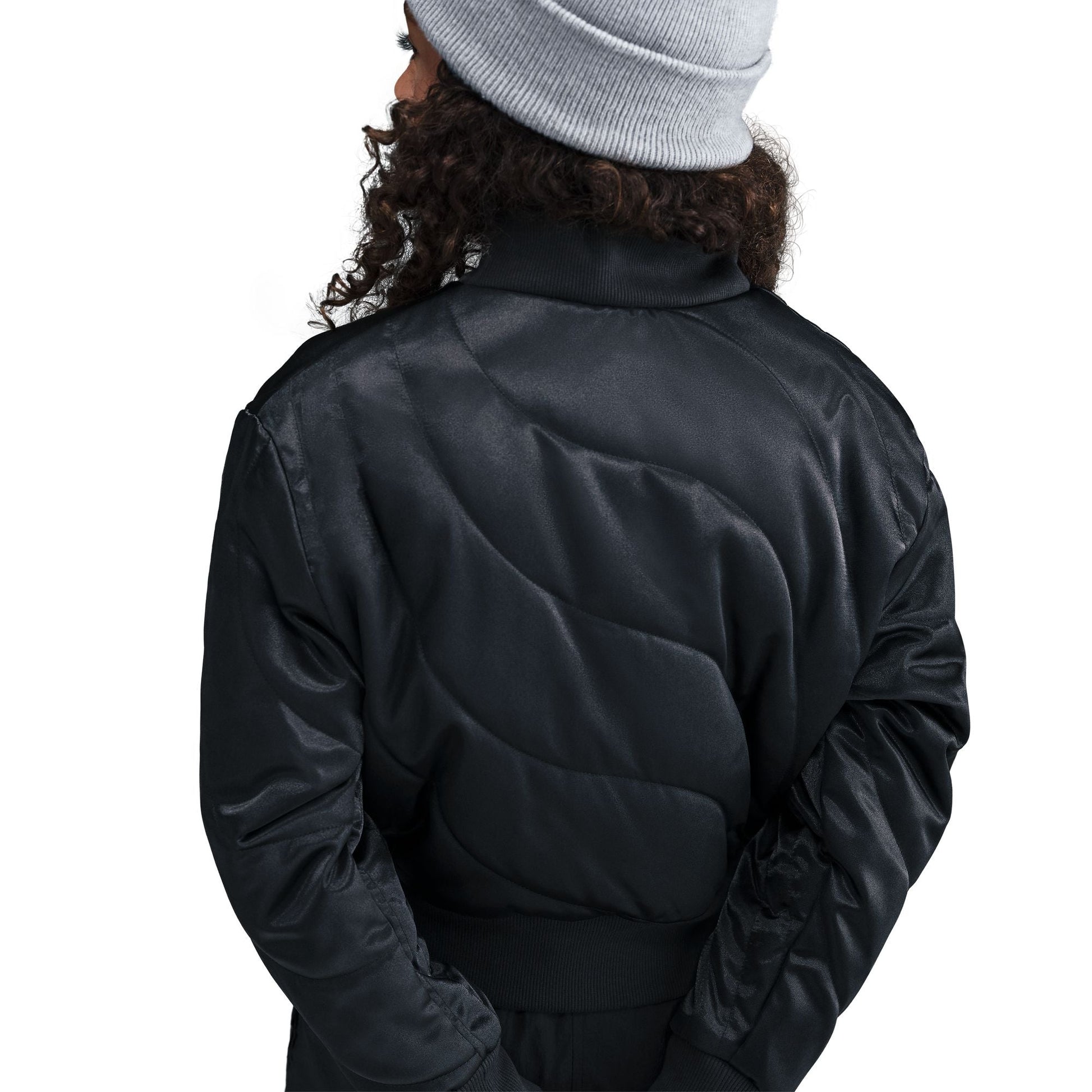 Staying warm has never looked so good. With a shiny satin shell and smooth inner lining, this quilted jacket has a roomy fit for easy layering over your favorite tops and hoodies.